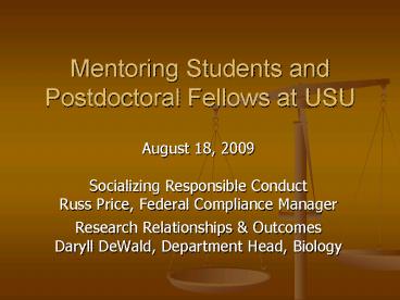 Title: Mentoring Students and Postdoctoral Fellows at USU