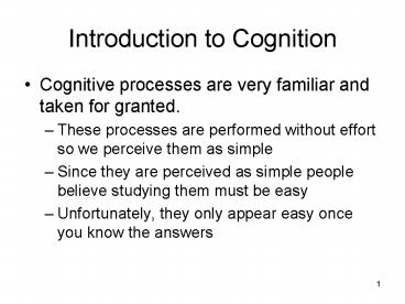 <Notice: Removed> Introduction to Cognition PowerPoint PPT Presentation