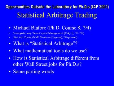 Statistical Arbitrage Trading PowerPoint PPT Presentation