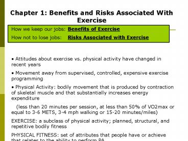 Title: Chapter 1: Benefits and Risks Associated With Exercise