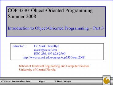 COP 3330: Object-Oriented Programming - PowerPoint PPT Presentation