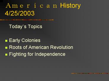 American History 4/25/2003 PowerPoint PPT Presentation