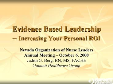 Title: Evidence Based Leadership Increasing Your Personal ROI