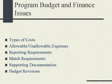 Program Budget and Finance Issues PowerPoint PPT Presentation