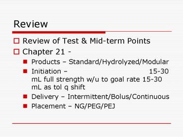 15-30 mL full strength w/u to goal rate 15-30 mL