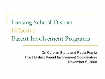 <Notice: Removed> Lansing School District Effective Parent Involvement Programs PowerPoint PPT Presentation