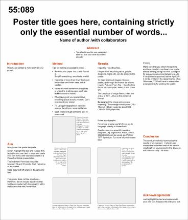 around you text. Dont overcrowd your poster. - Try using photographs or coloured graphs. Avoid
