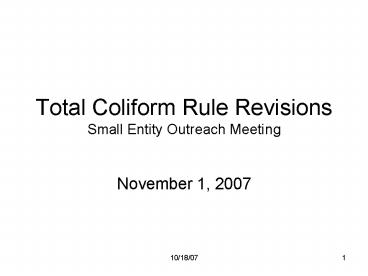 Title: Total Coliform Rule Revisions Small Entity Outreach Meeting
