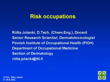 <Notice: Removed> Risk occupations PowerPoint PPT Presentation