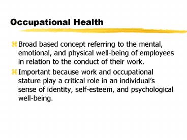 Occupational Health PowerPoint PPT Presentation