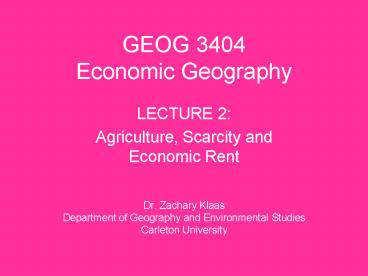 LECTURE 2 Agriculture, Scarcity and Economic Rent