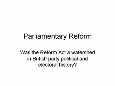 Parliamentary Reform PowerPoint PPT Presentation