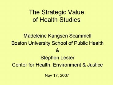 Title: The Strategic Value of Health Studies
