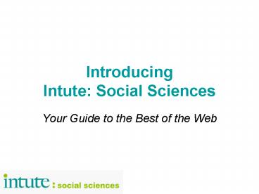 Introducing Intute: Social Sciences PowerPoint PPT Presentation