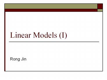 Title: Linear Models I