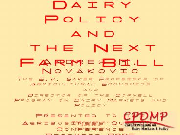 Dairy Policy and the Next Farm Bill PowerPoint PPT Presentation