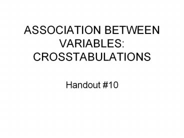 Title: ASSOCIATION BETWEEN VARIABLES: CROSSTABULATIONS