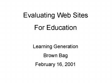 Evaluating Web Sites For Education Learning