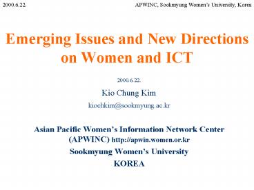 Title: Emerging Issues and New Directions on Women and ICT