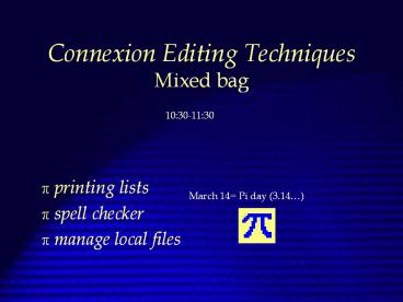 Title: Connexion Editing Techniques Mixed bag