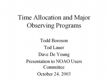 <Notice: Removed> Time Allocation and Major Observing Programs PowerPoint PPT Presentation