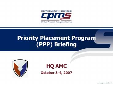 Priority Placement Program PPP Briefing PowerPoint PPT Presentation