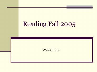 Title: Reading Fall 2005