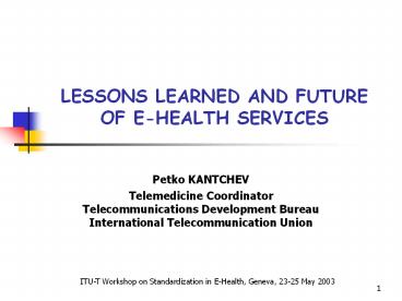 Title: LESSONS LEARNED AND FUTURE OF E-HEALTH SERVICES