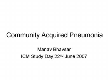 Community Acquired Pneumonia PowerPoint PPT Presentation
