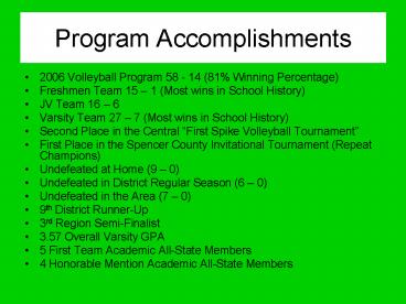 • 2006 Volleyball Program 58 - 14 (81 Winning