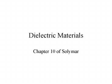 Dielectric Materials PowerPoint PPT Presentation