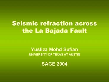 Seismic refraction across the La Bajada Fault PowerPoint PPT Presentation