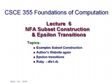 Lecture 6 NFA Subset Construction PowerPoint PPT Presentation
