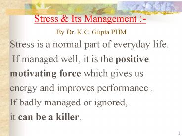 1Stress Its Management - By Dr.