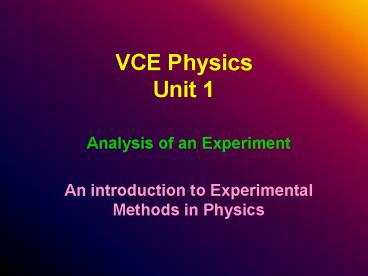 Title: VCE Physics Unit 1