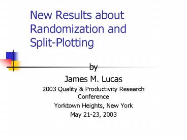Title: New Results about Randomization and SplitPlotting