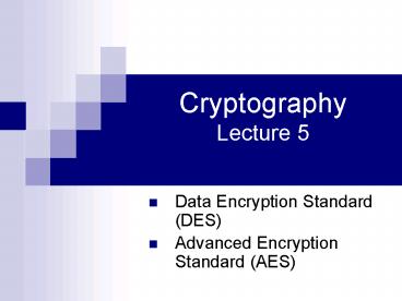 Title: Cryptography Lecture 5