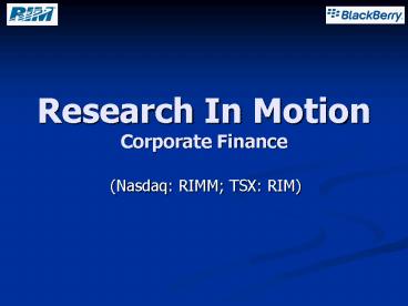 Research In Motion Corporate Finance PowerPoint PPT Presentation