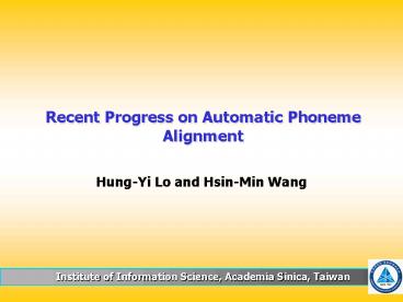 Recent Progress on Automatic Phoneme Alignment PowerPoint PPT Presentation