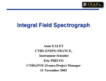 IN2P3/INSU/CNRS Euro 3D Software for 3D spectrograph 10 2