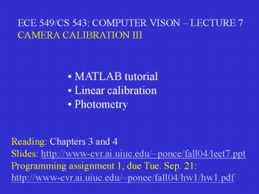 ECE 549CS 543: COMPUTER VISON LECTURE 7 PowerPoint PPT Presentation
