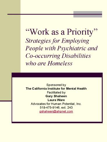 Title: Work as a Priority Strategies for Employing People with Psychiatric and Cooccurring Disabilities who