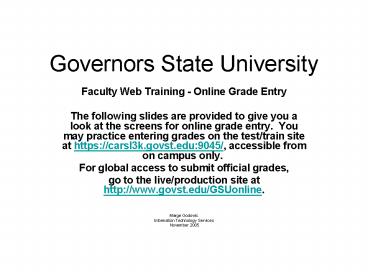 - Faculty Web Training - Online Grade Entry