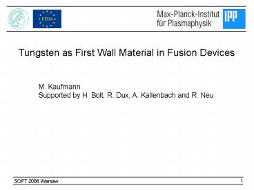 M. Kaufmann Supported by H. Bolt, R. Dux, A.