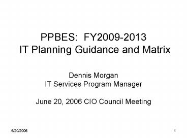 Title: PPBES: FY20092013 IT Planning Guidance and Matrix