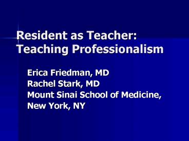 Resident as Teacher: Teaching Professionalism PowerPoint PPT Presentation
