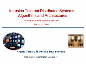 essential part of intrusion tolerant systems - More research needed to make intrusion tolerance