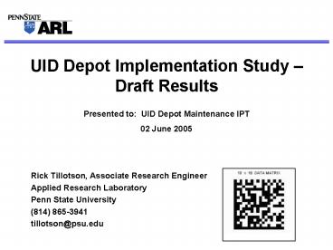 1UID Depot Implementation Study Draft Results