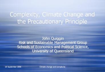 Complexity, Climate Change and the Precautionary Principle PowerPoint PPT Presentation