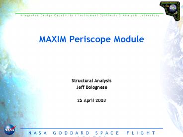 predicted flight loads are applied. - Quantify jitter sources and verify that they are